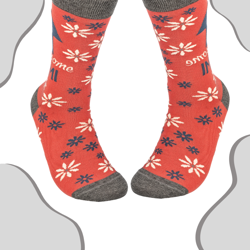 These red and grey 'Awesome Mimi' socks with floral designs are the perfect blend of comfort and love.