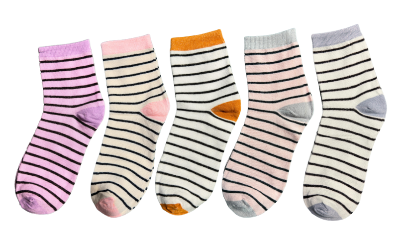 Add a splash of color with 5 pairs of striped socks in vibrant and bold hues.
