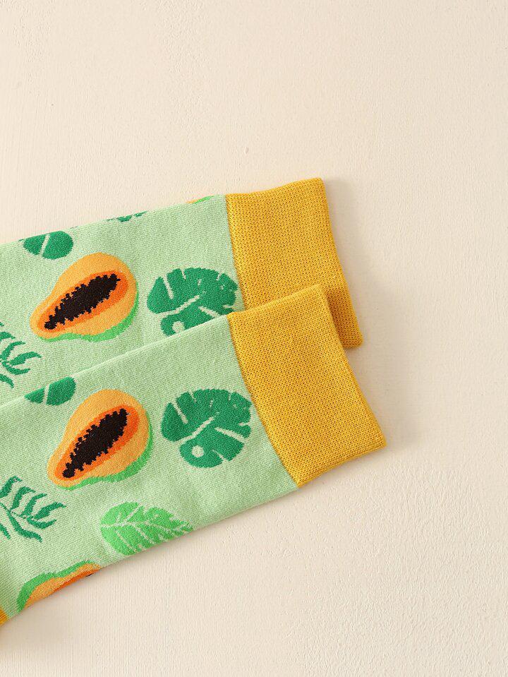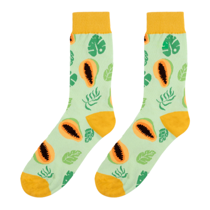 Embrace the taste of summer with these green and yellow papaya socks. Vibrant and playful, perfect for a touch of tropical fun in your wardrobe.